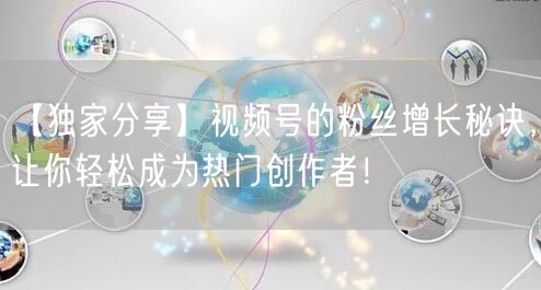 【独家分享】视频号的粉丝增长秘诀,让你轻松成为热门创作者!