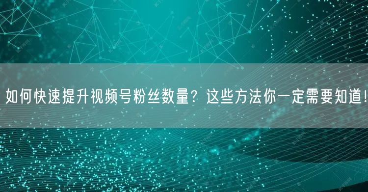 如何快速提升视频号粉丝数量?这些方法你一定需要知道!