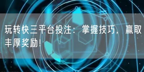 掌握快三平台投注技巧,轻松赢取丰厚奖励。获取有效的快三投注策略,提高投注成功率。轻松玩转快三平台,赢取丰厚奖金。