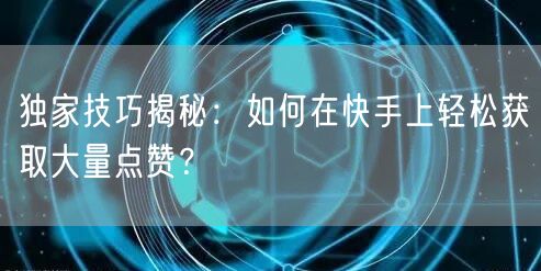 揭秘独家技巧,让你轻松掌握在快手上获取大量点赞的方法,提升社交影响力,成为快手达人!
